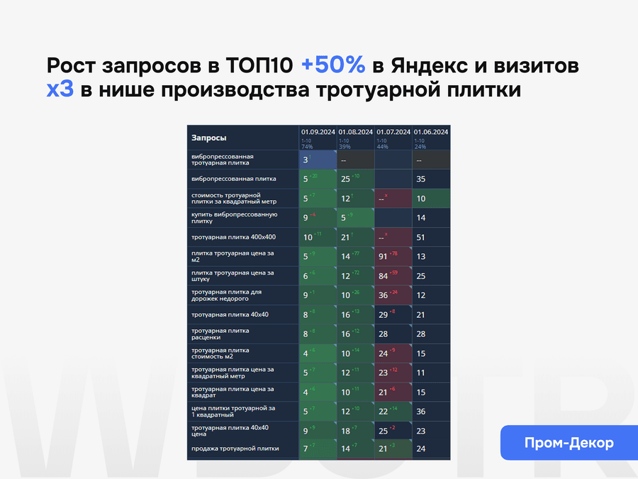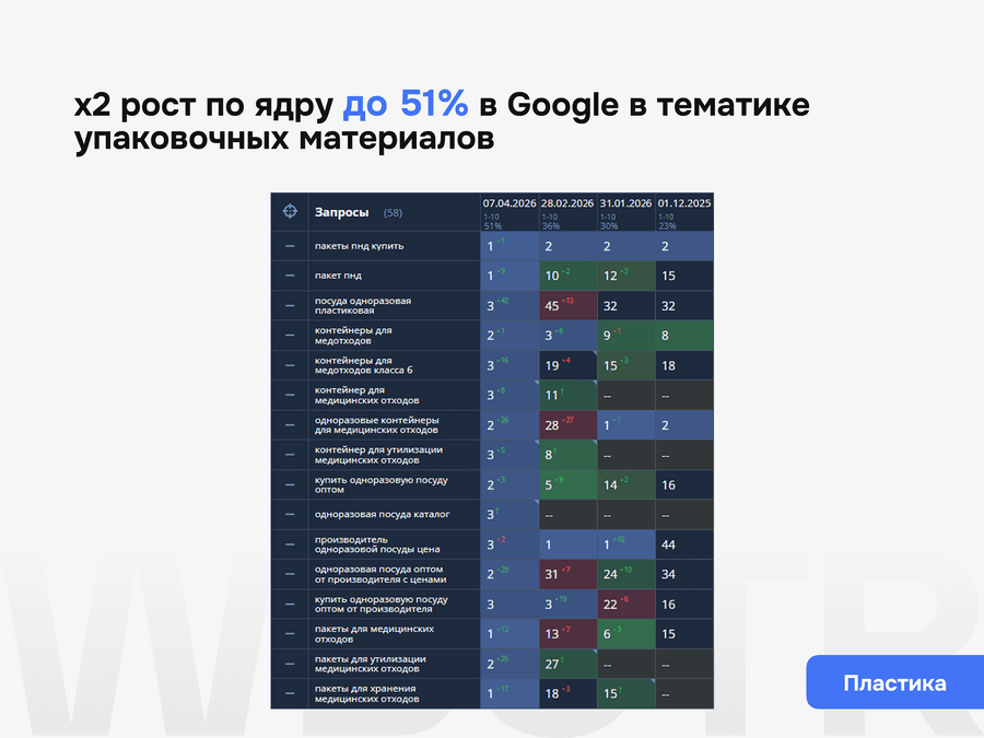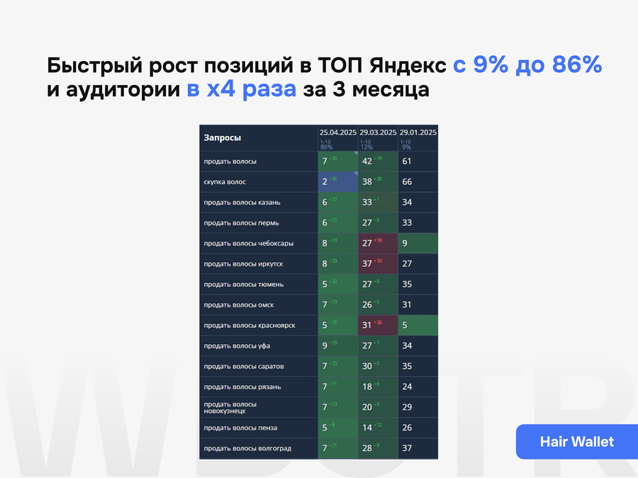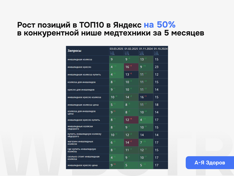 Смотрим, какие разделы, карточки и шаблонные страницы реально приводят заявки, где сайт усиливается, а где остаются слабые зоны, требующие следующей итерации работ.