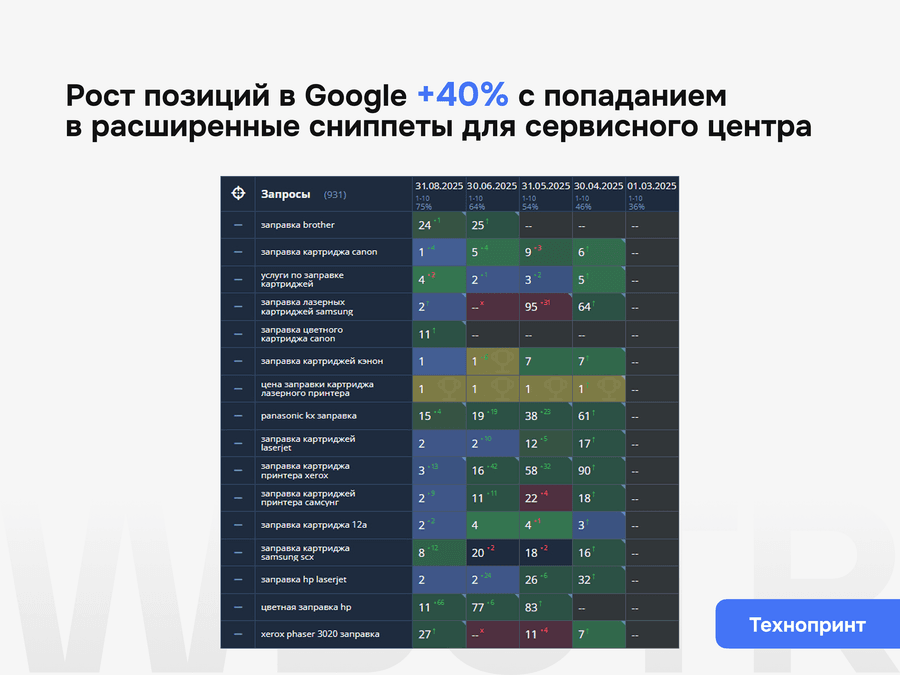 Первые изменения обычно появляются после устранения критичных технических ограничений и усиления ключевых посадочных страниц. Более заметный эффект приходит позже, когда сайт уже корректно индексируется, структура соответствует спросу, а шаблонные и служебные сущности перестают мешать росту.